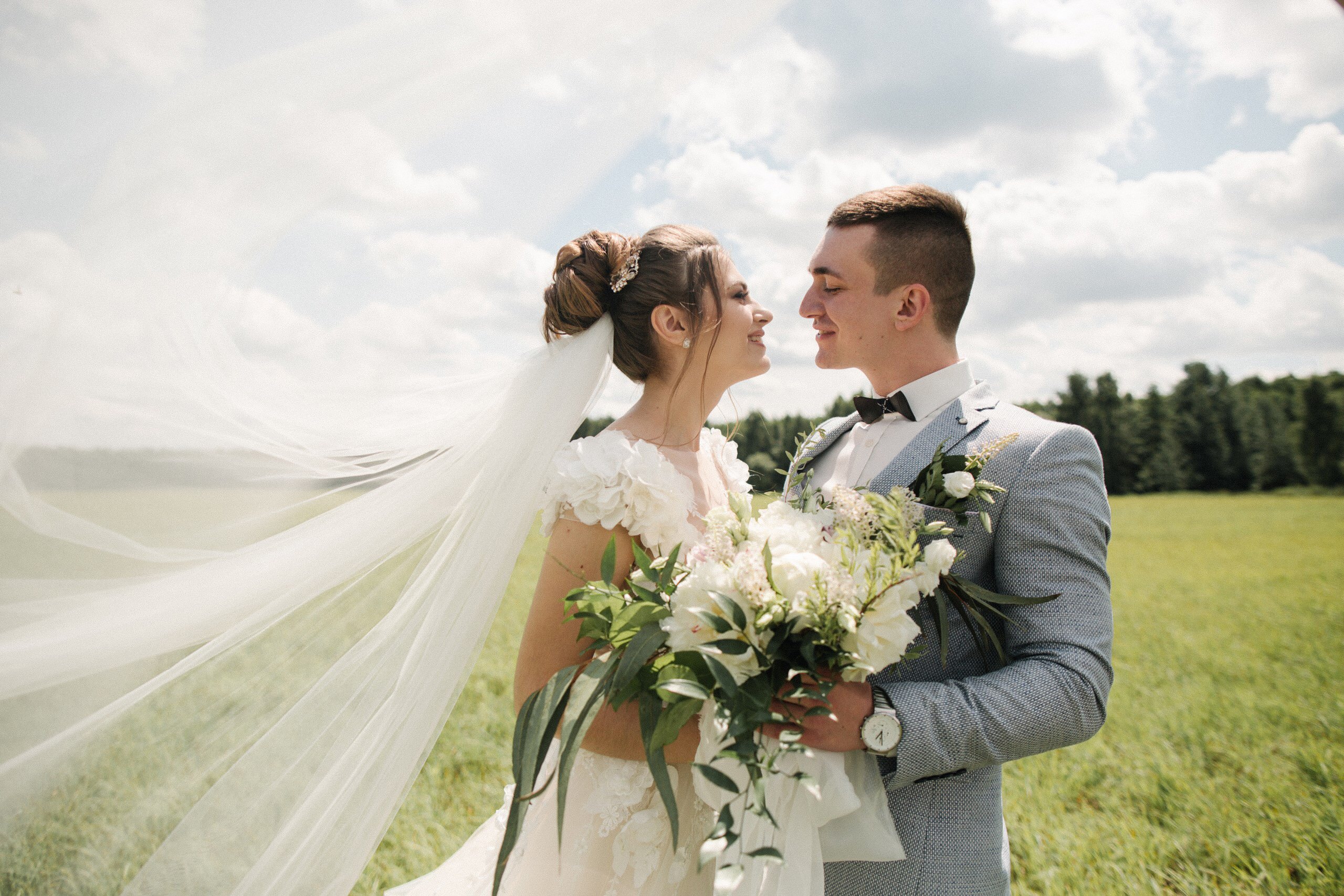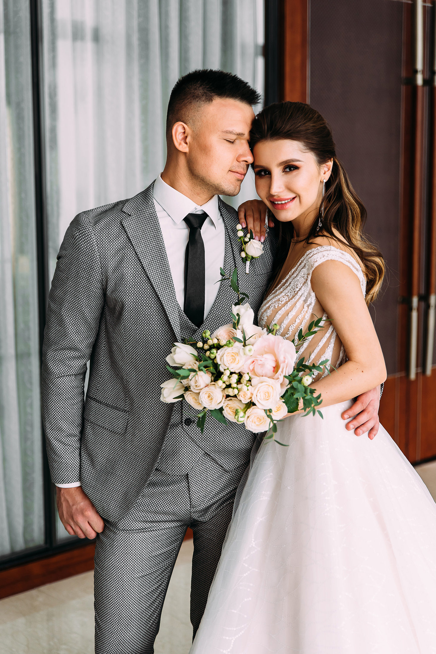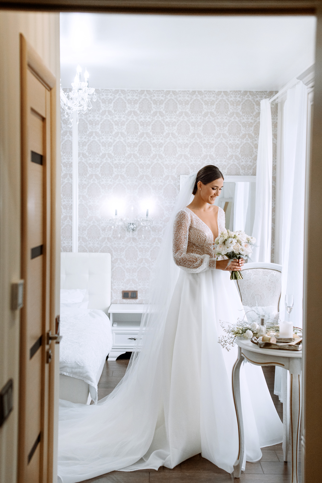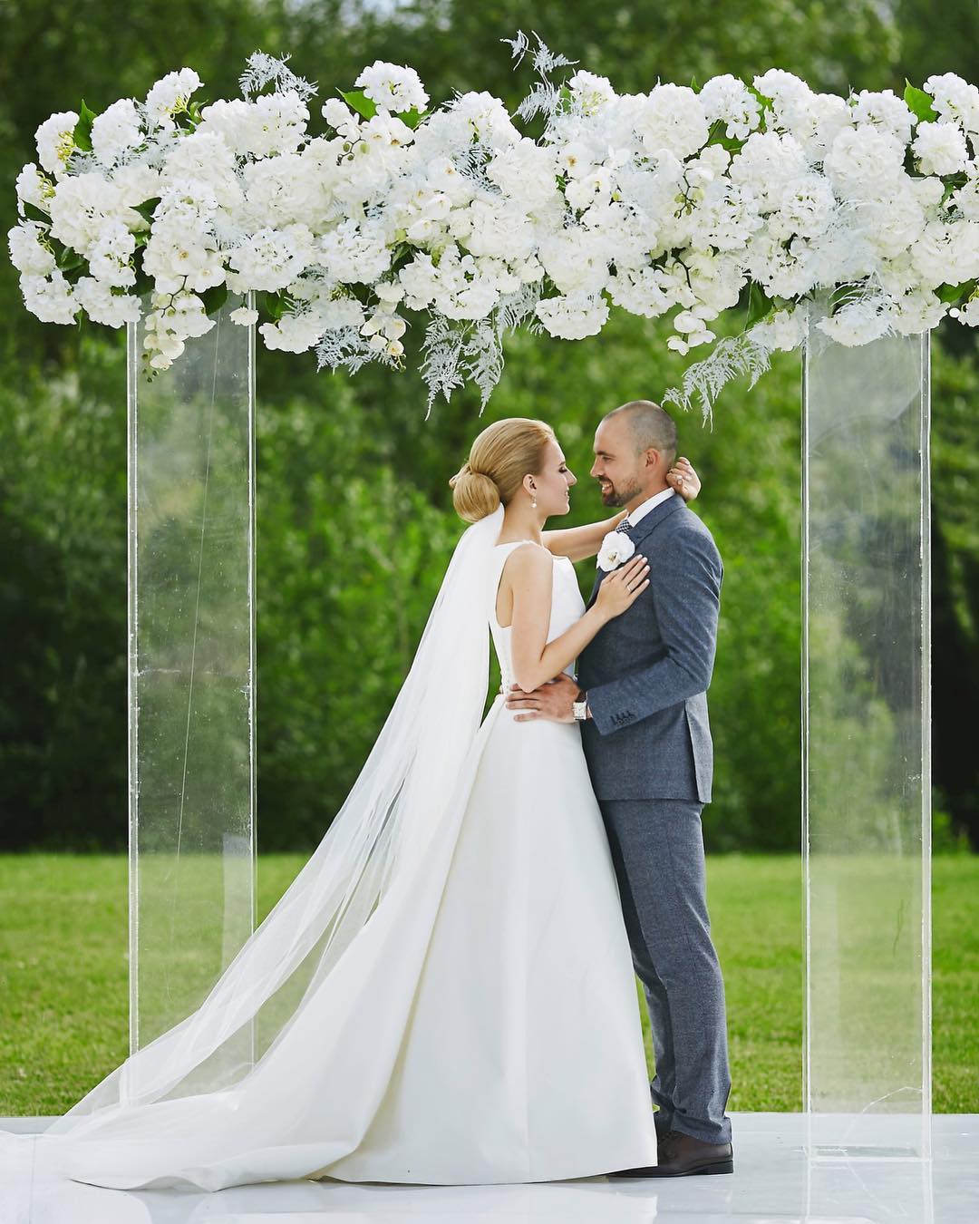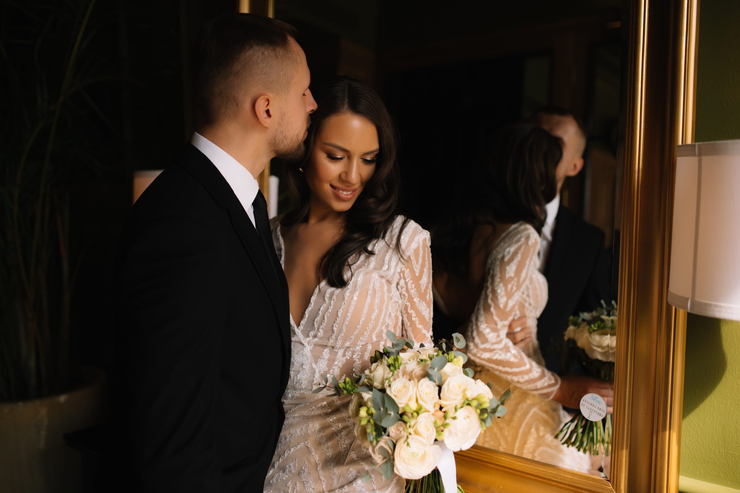 К сожалению, мы не видим окончательного образа невесты и восхищённого взгляда жениха, а так хотелось бы взглянуть хоть одним глазком!