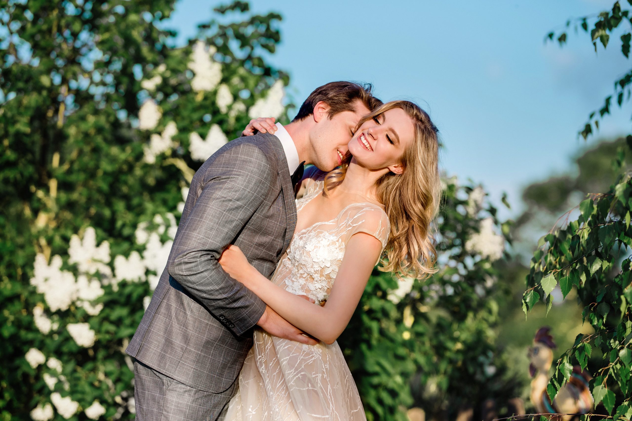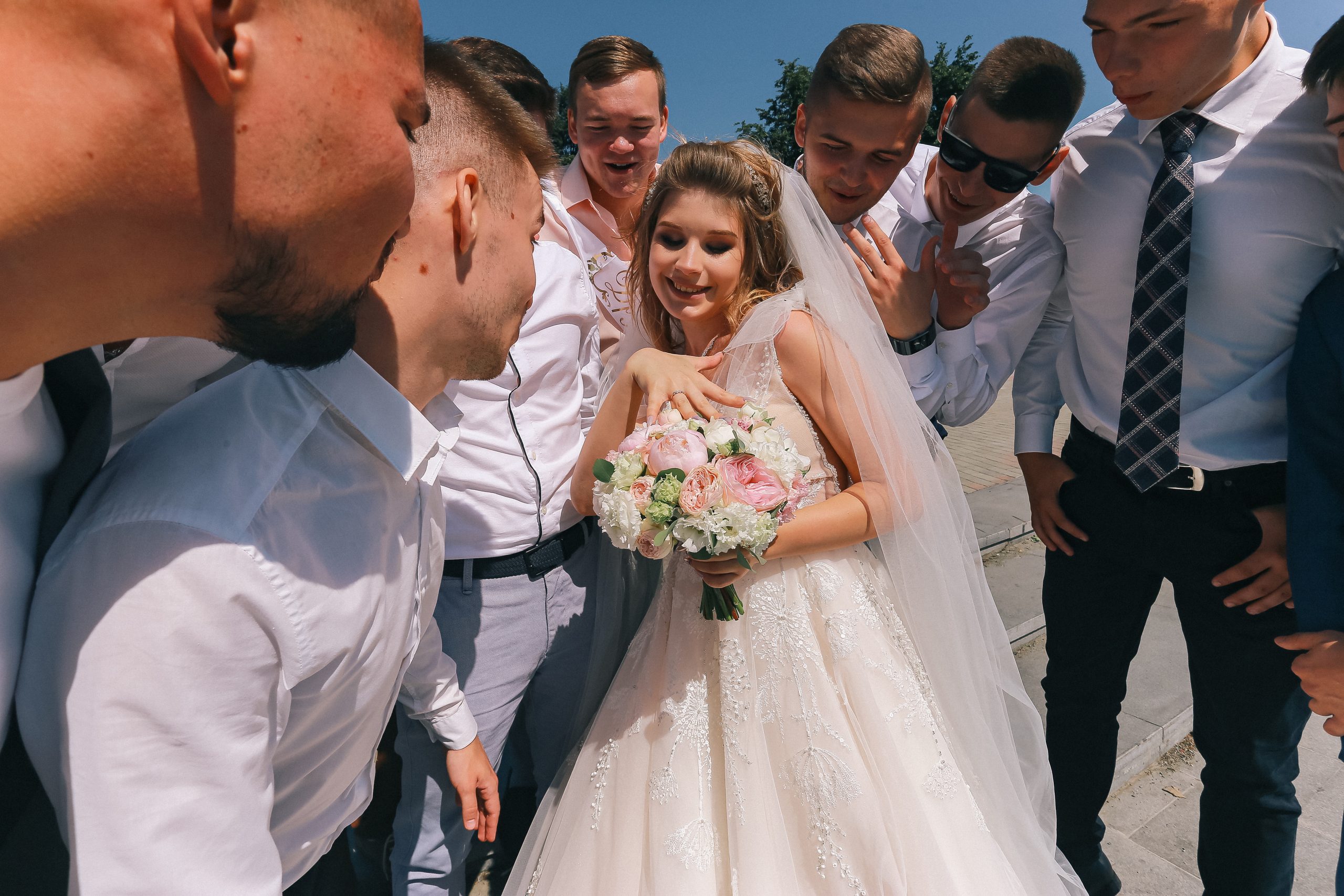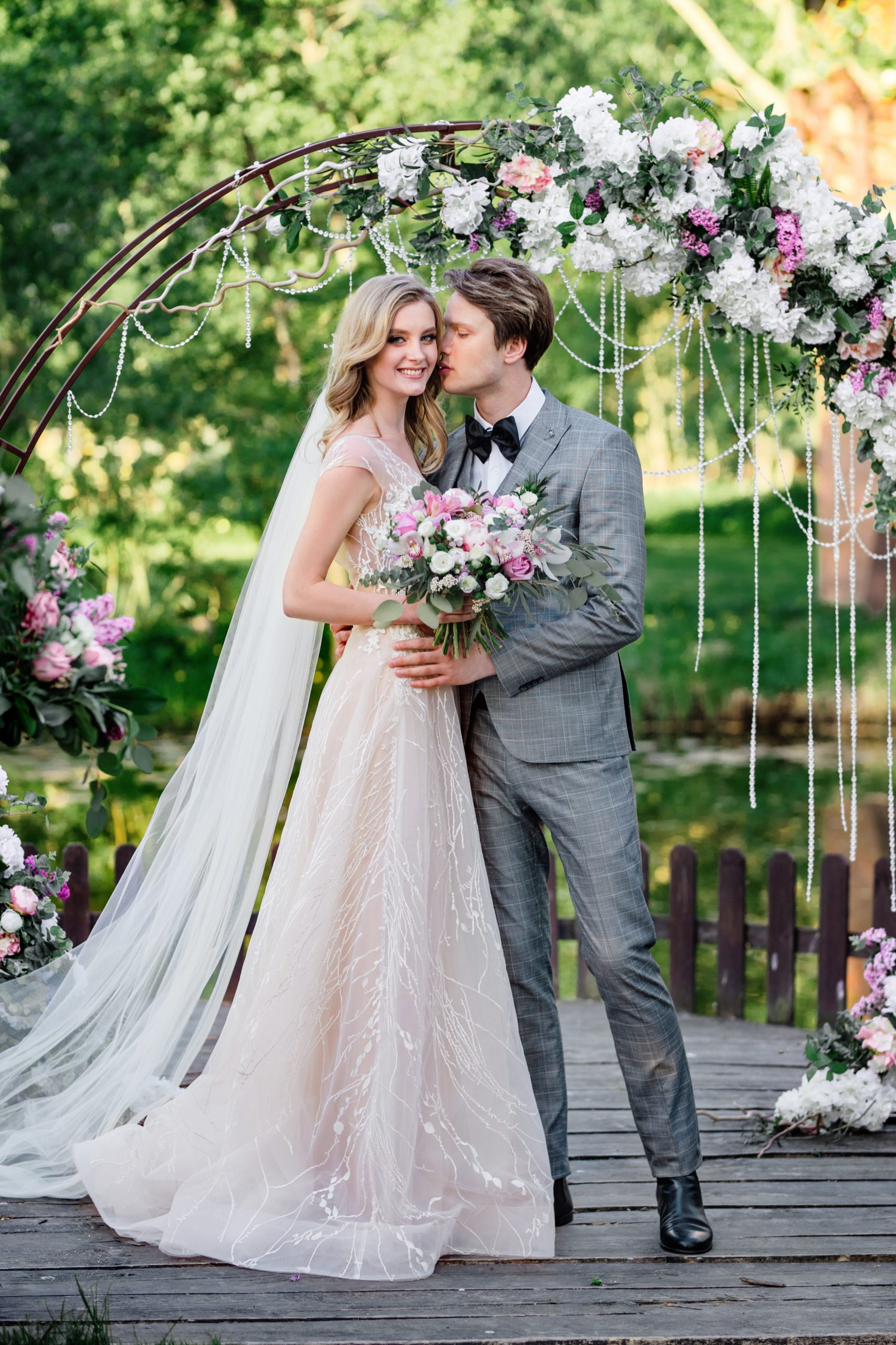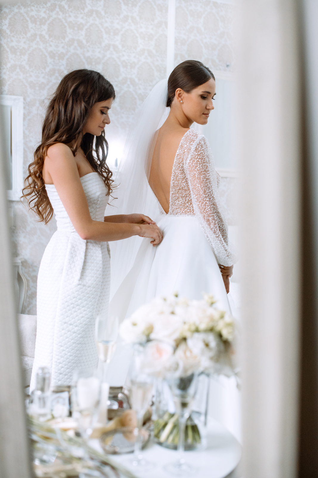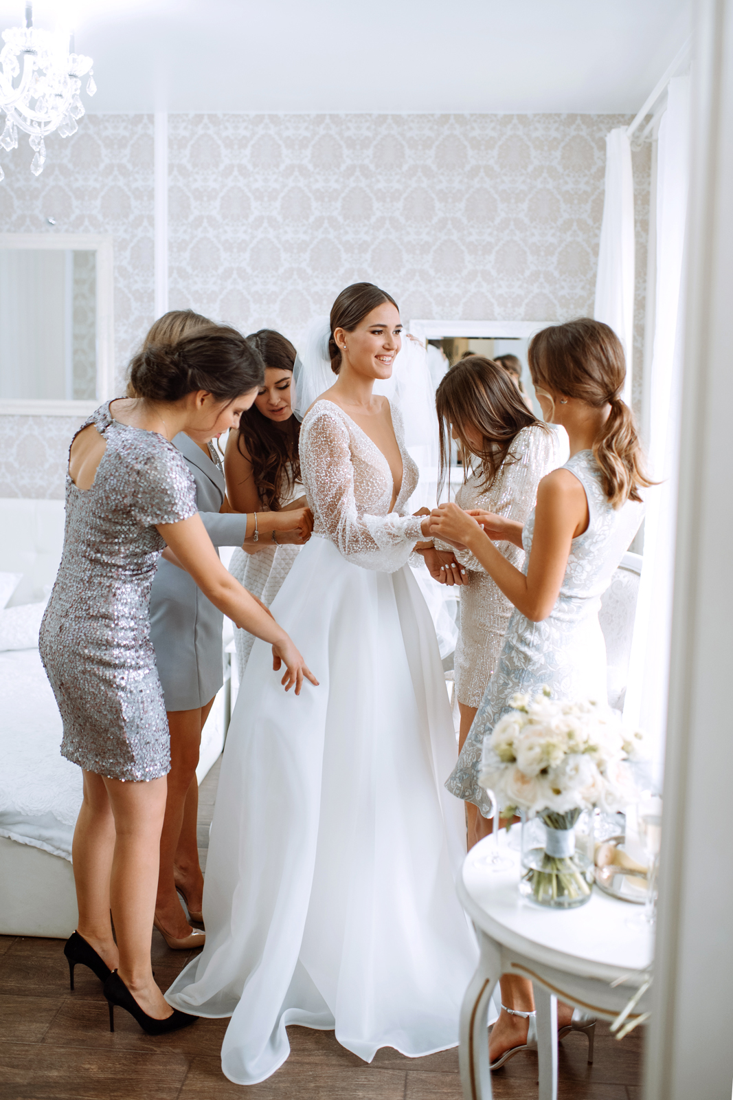 К сожалению, мы не видим окончательного образа невесты и восхищённого взгляда жениха, а так хотелось бы взглянуть хоть одним глазком!