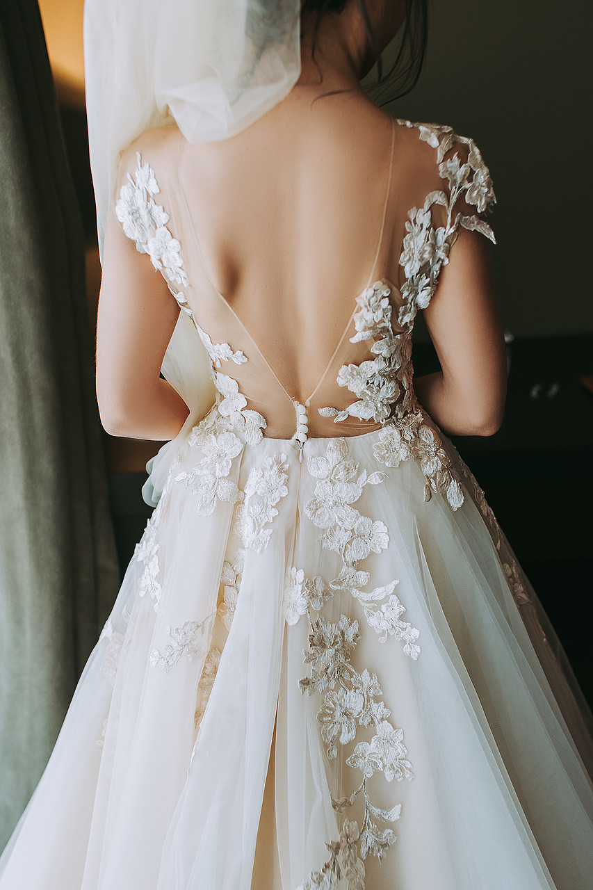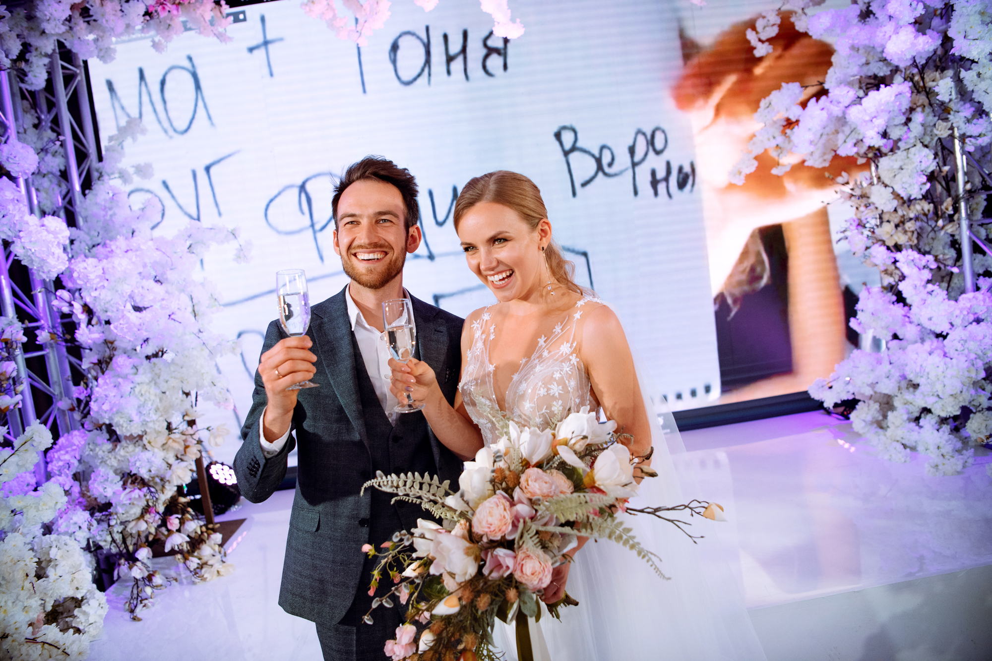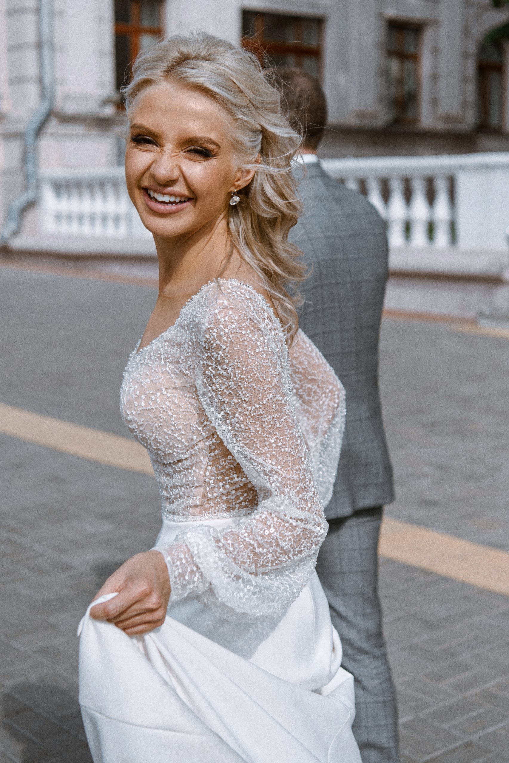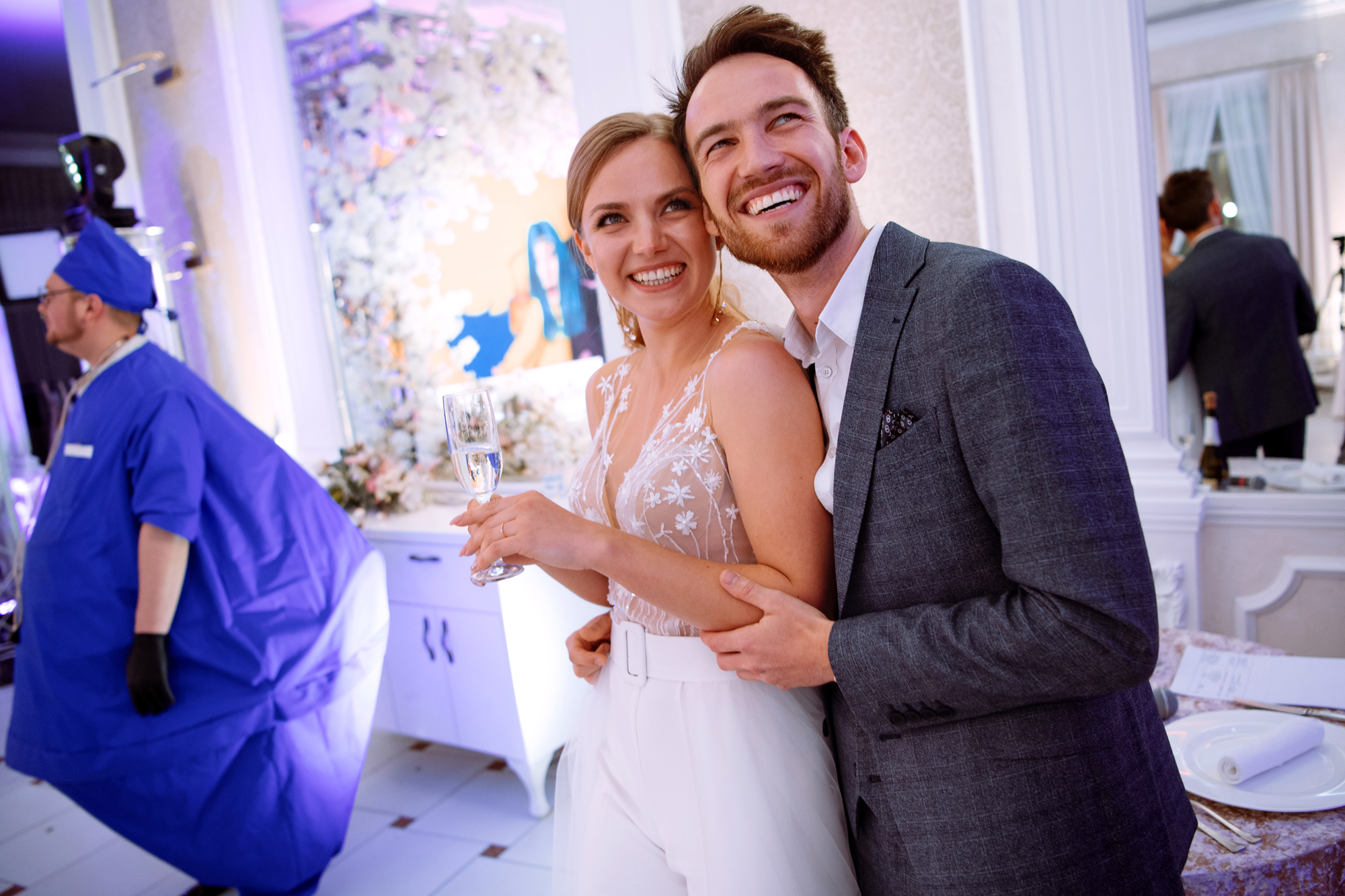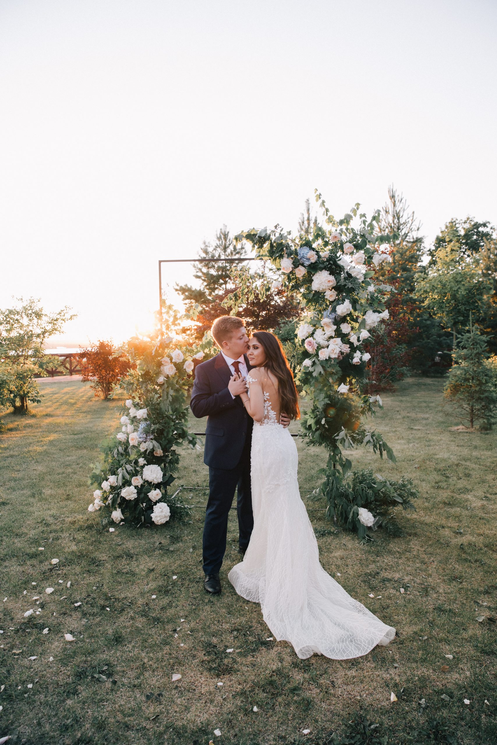 К сожалению, мы не видим окончательного образа невесты и восхищённого взгляда жениха, а так хотелось бы взглянуть хоть одним глазком!