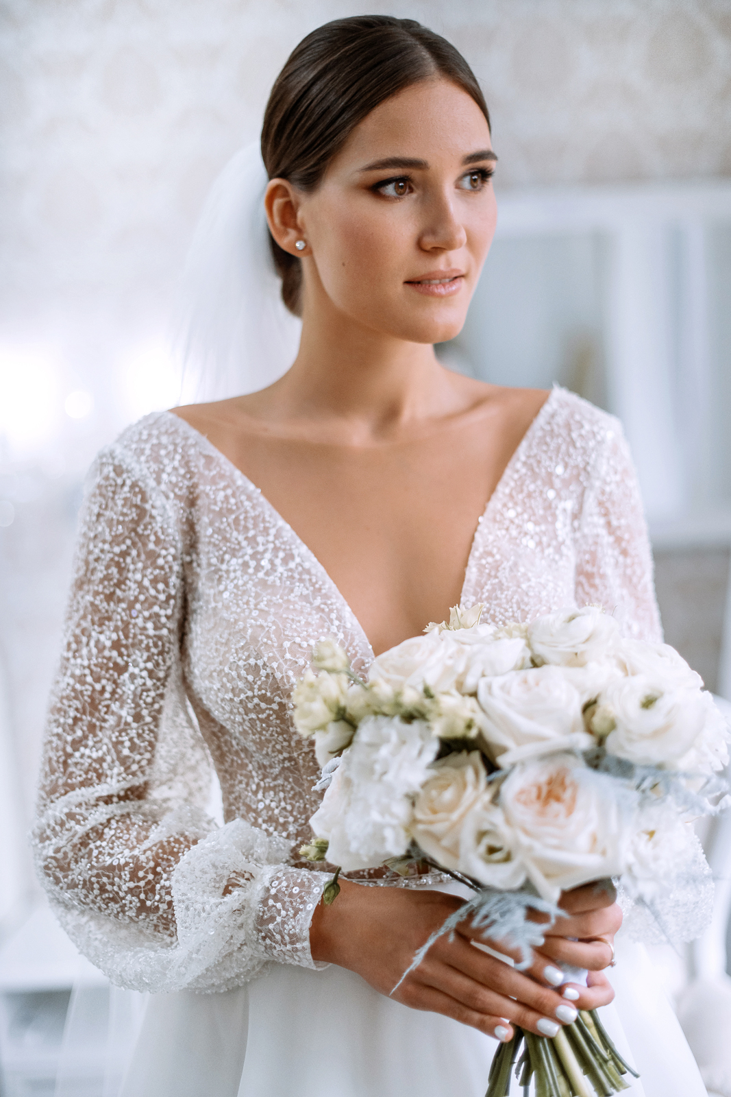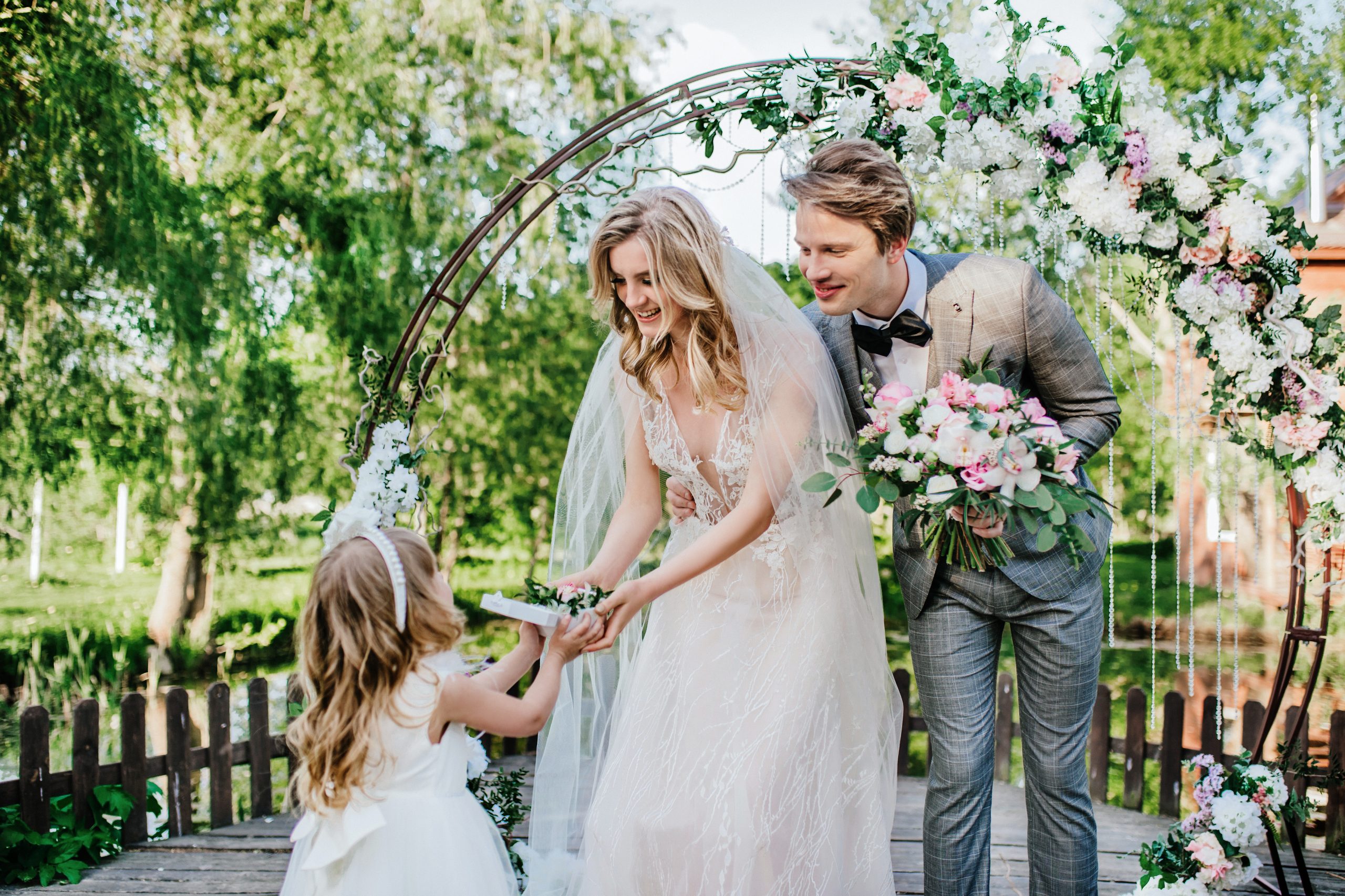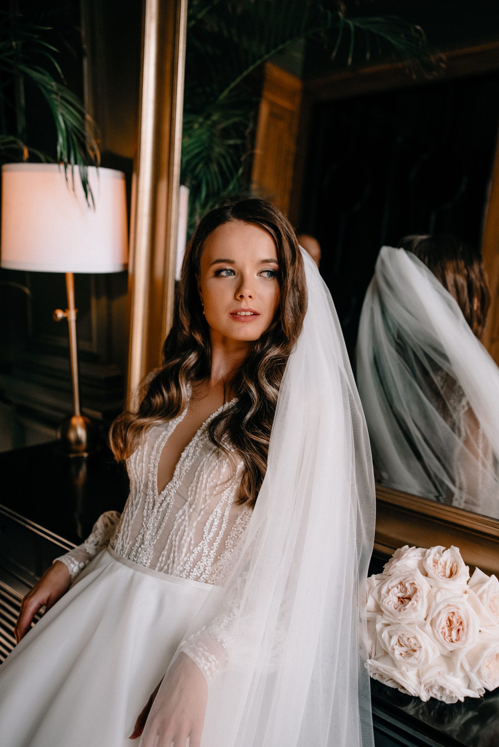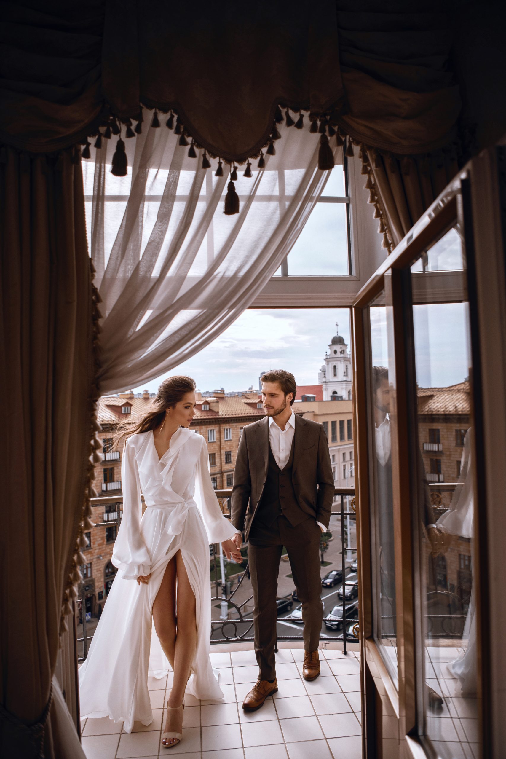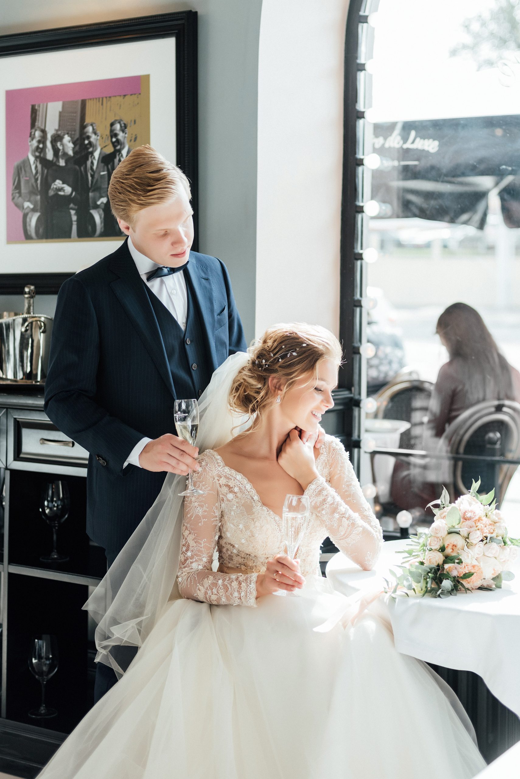 К сожалению, мы не видим окончательного образа невесты и восхищённого взгляда жениха, а так хотелось бы взглянуть хоть одним глазком!