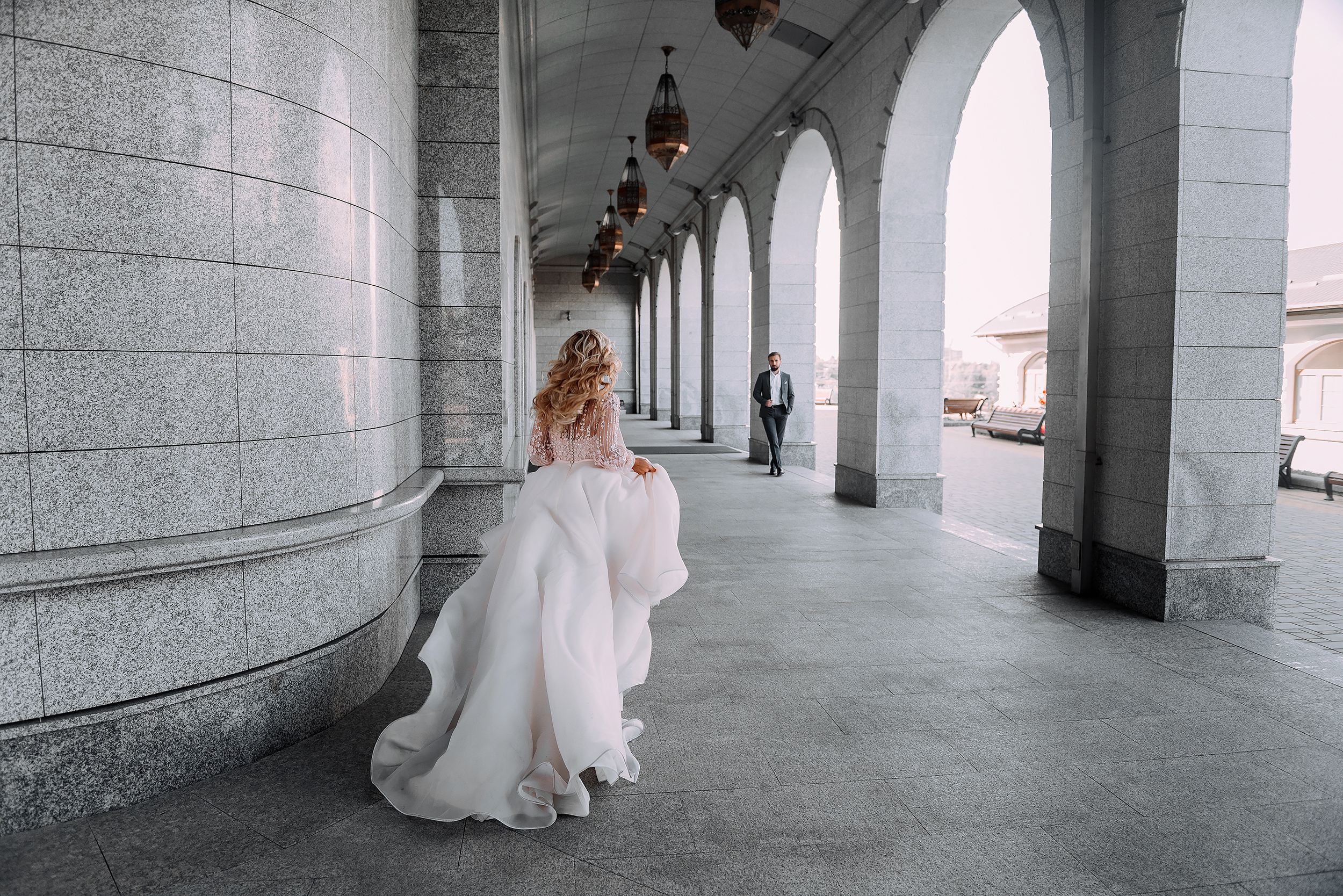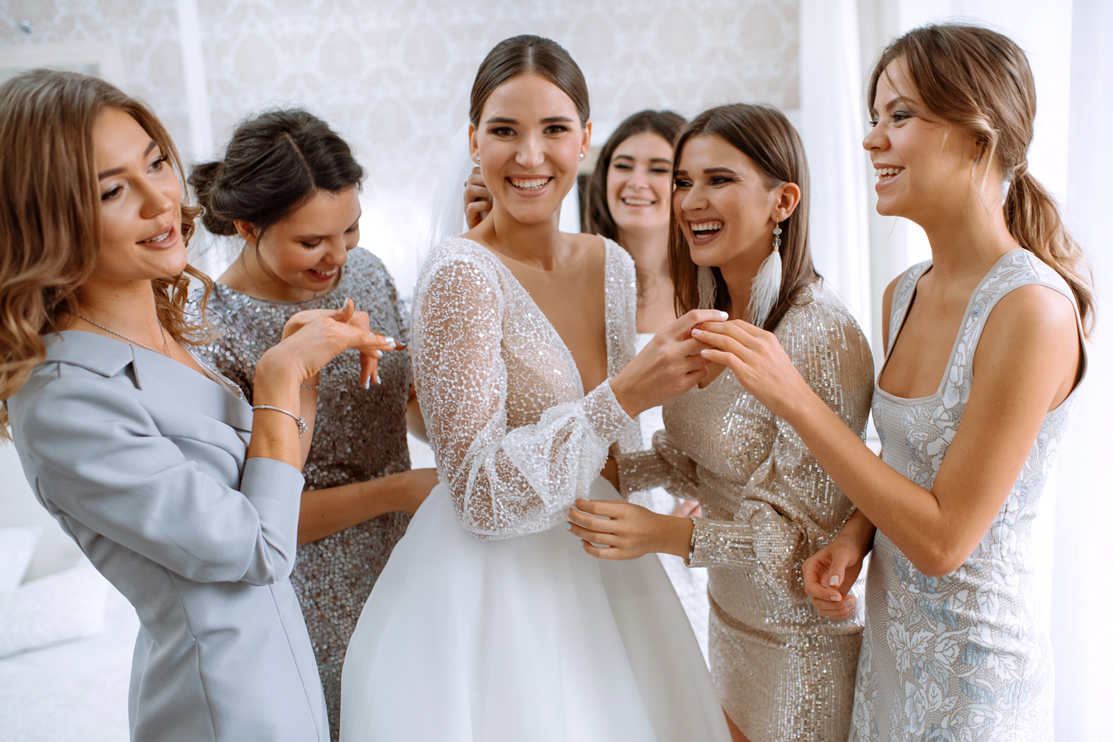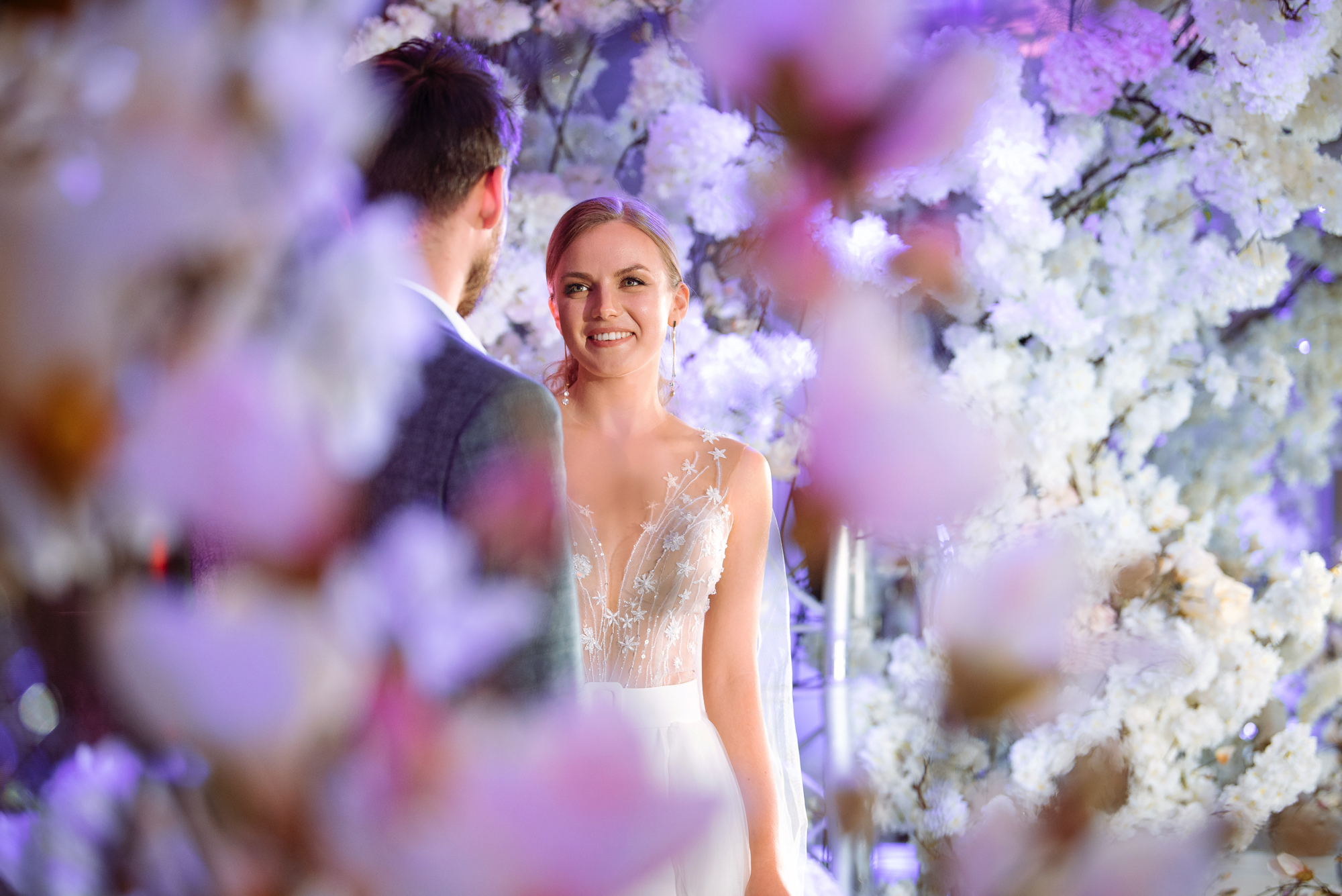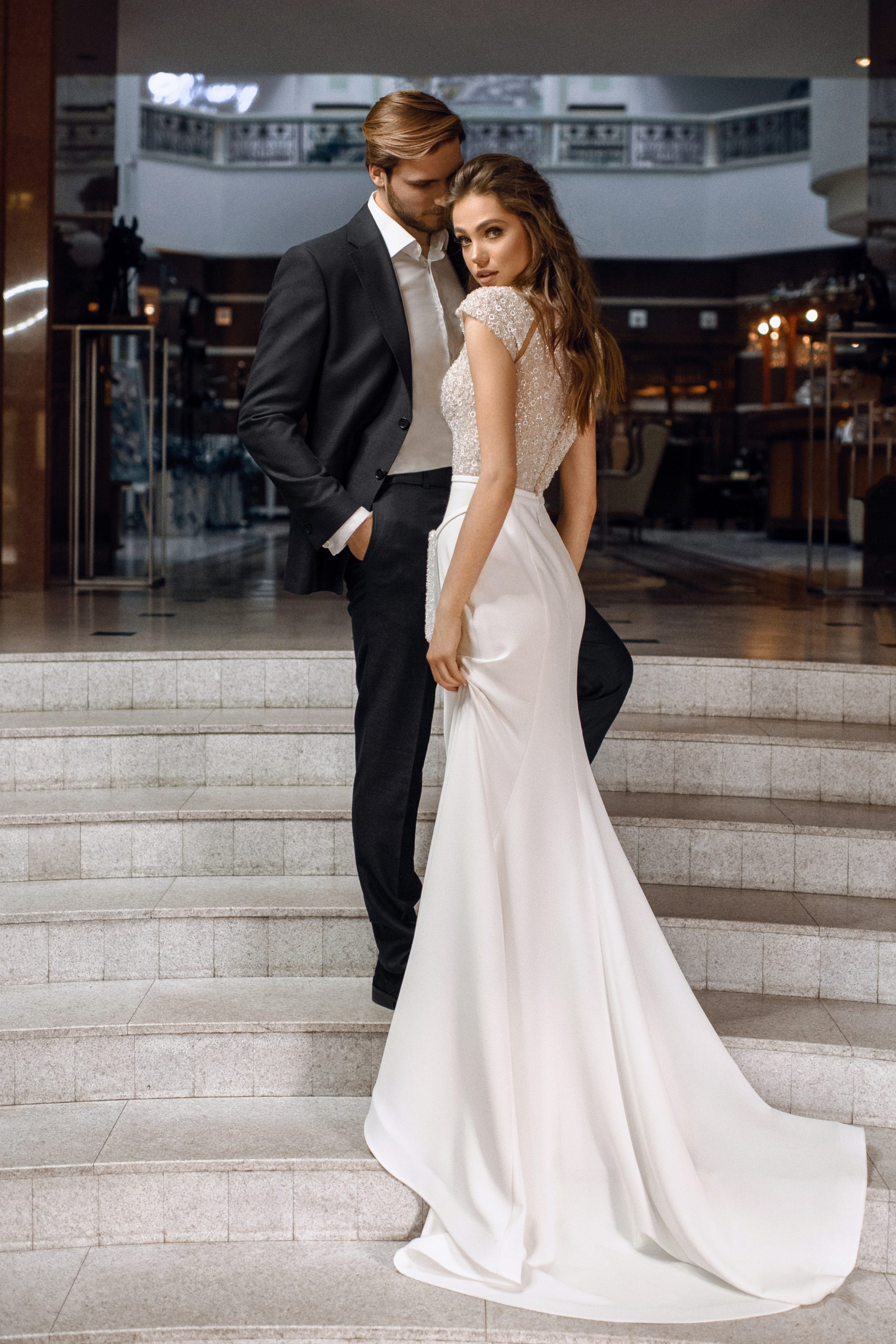 К сожалению, мы не видим окончательного образа невесты и восхищённого взгляда жениха, а так хотелось бы взглянуть хоть одним глазком!
