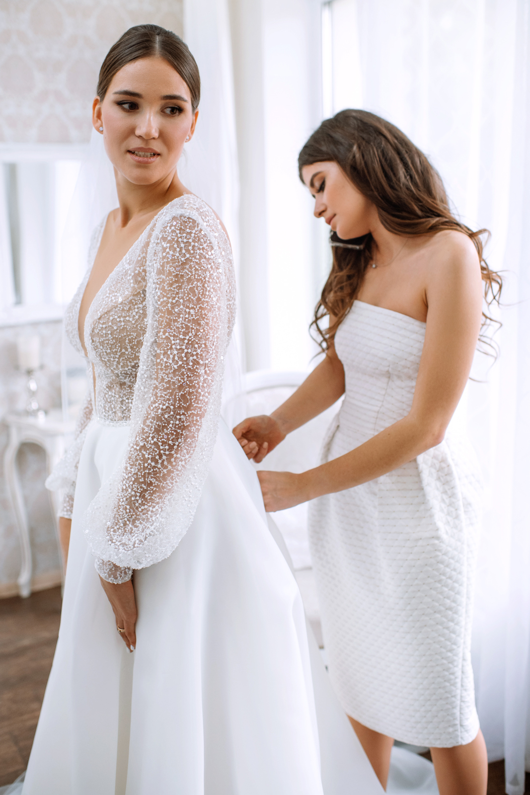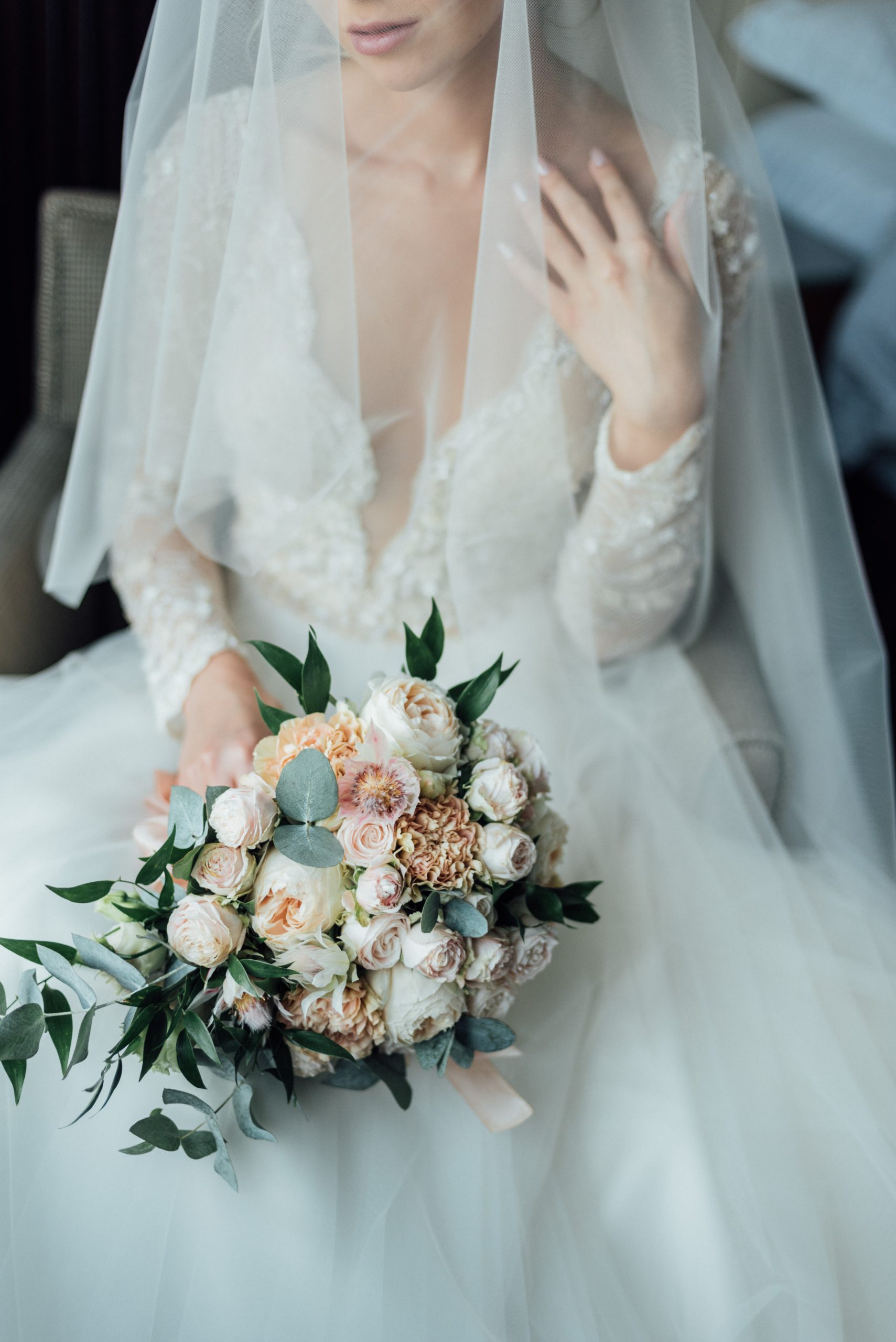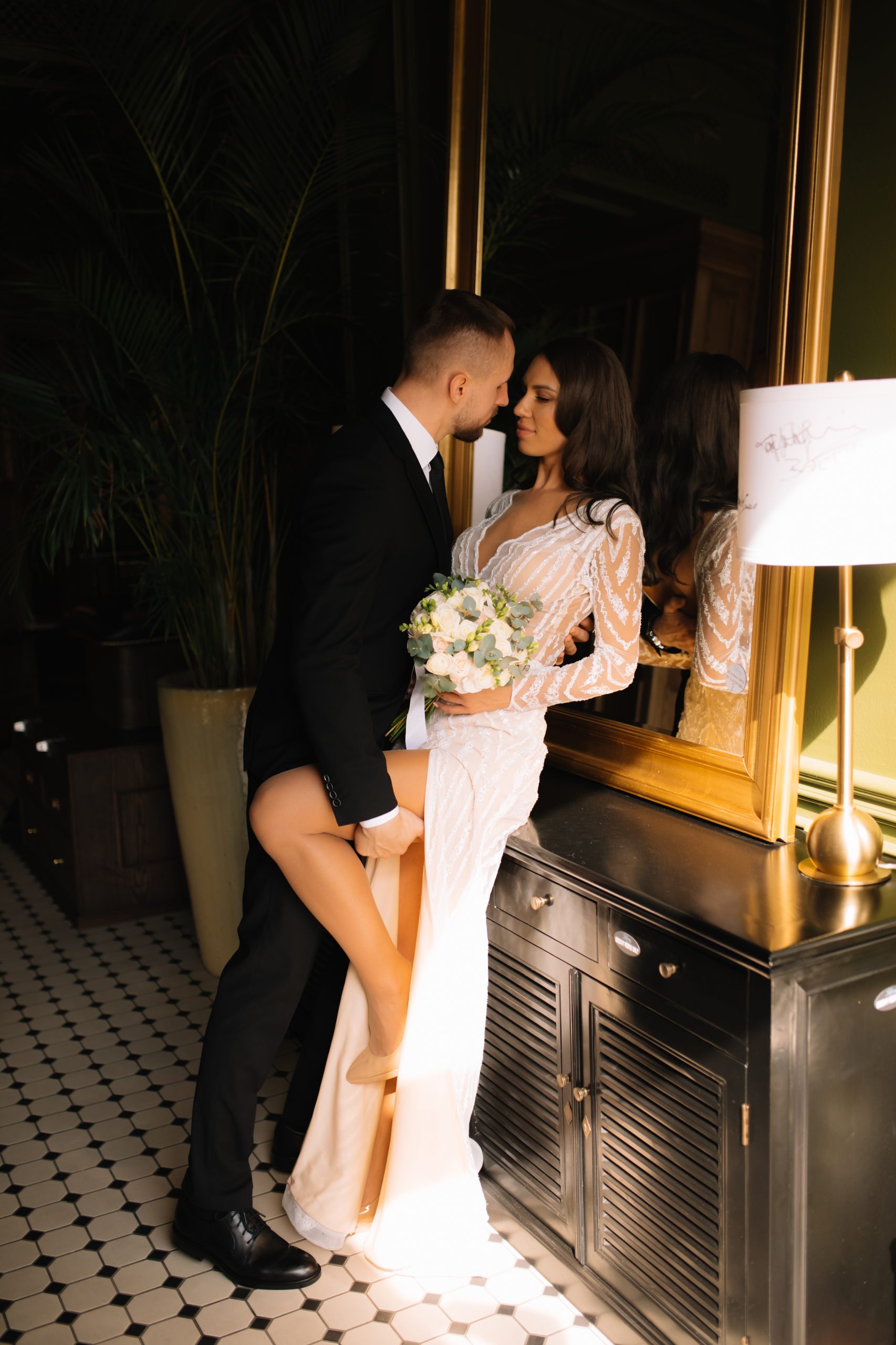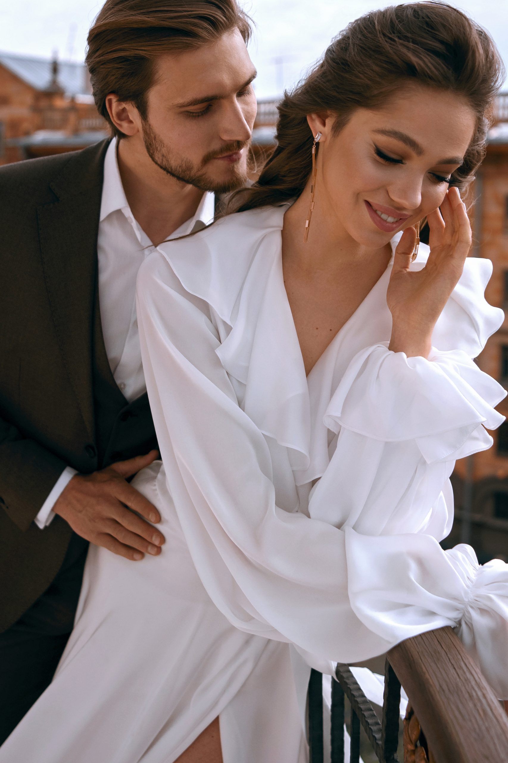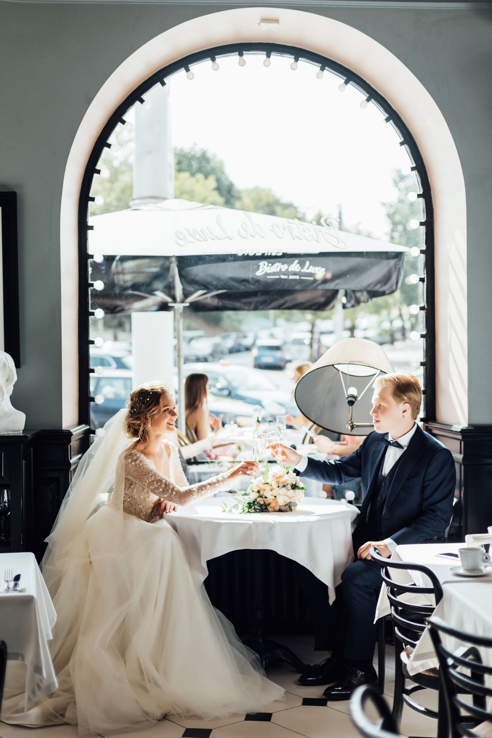 К сожалению, мы не видим окончательного образа невесты и восхищённого взгляда жениха, а так хотелось бы взглянуть хоть одним глазком!