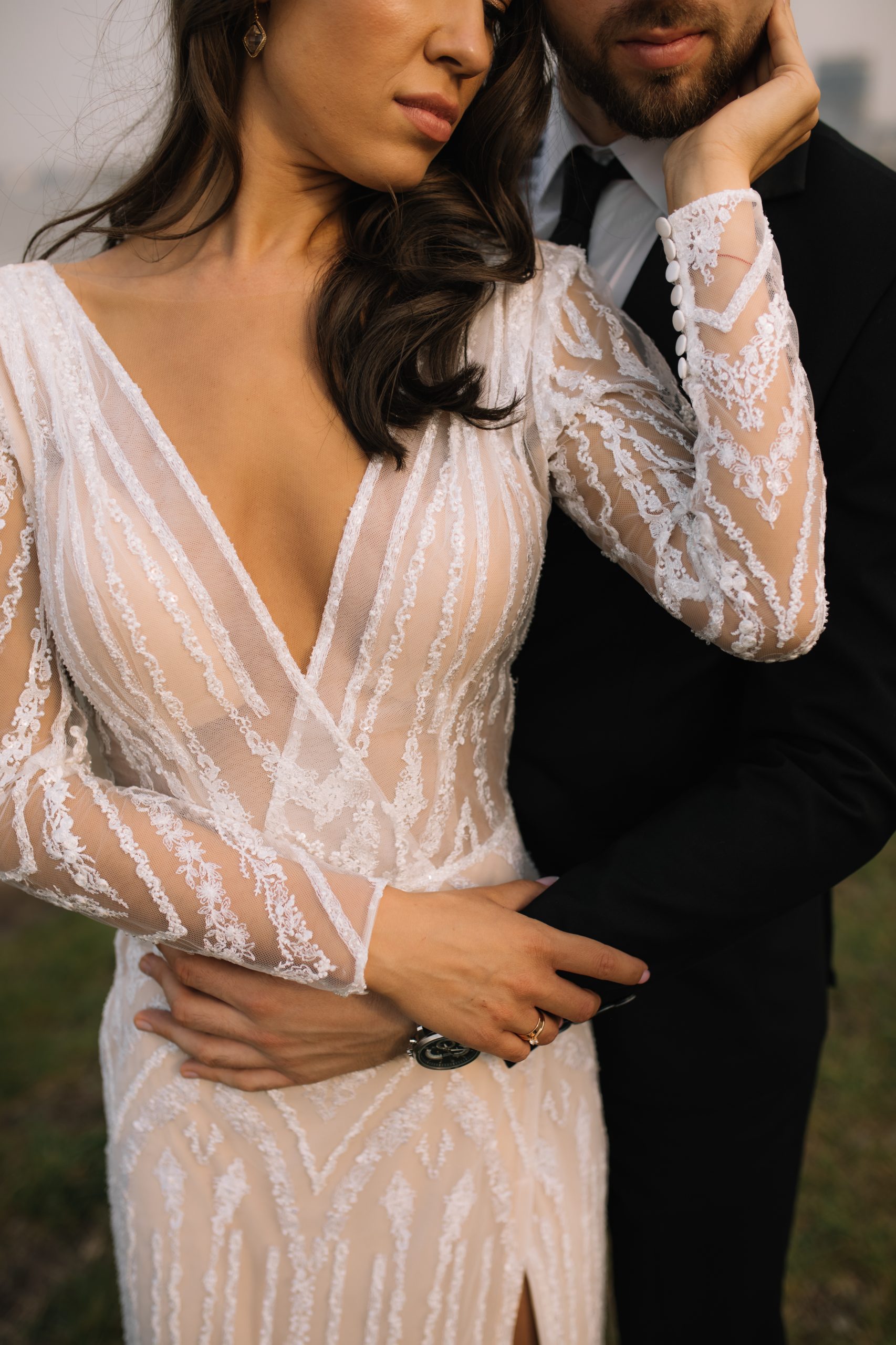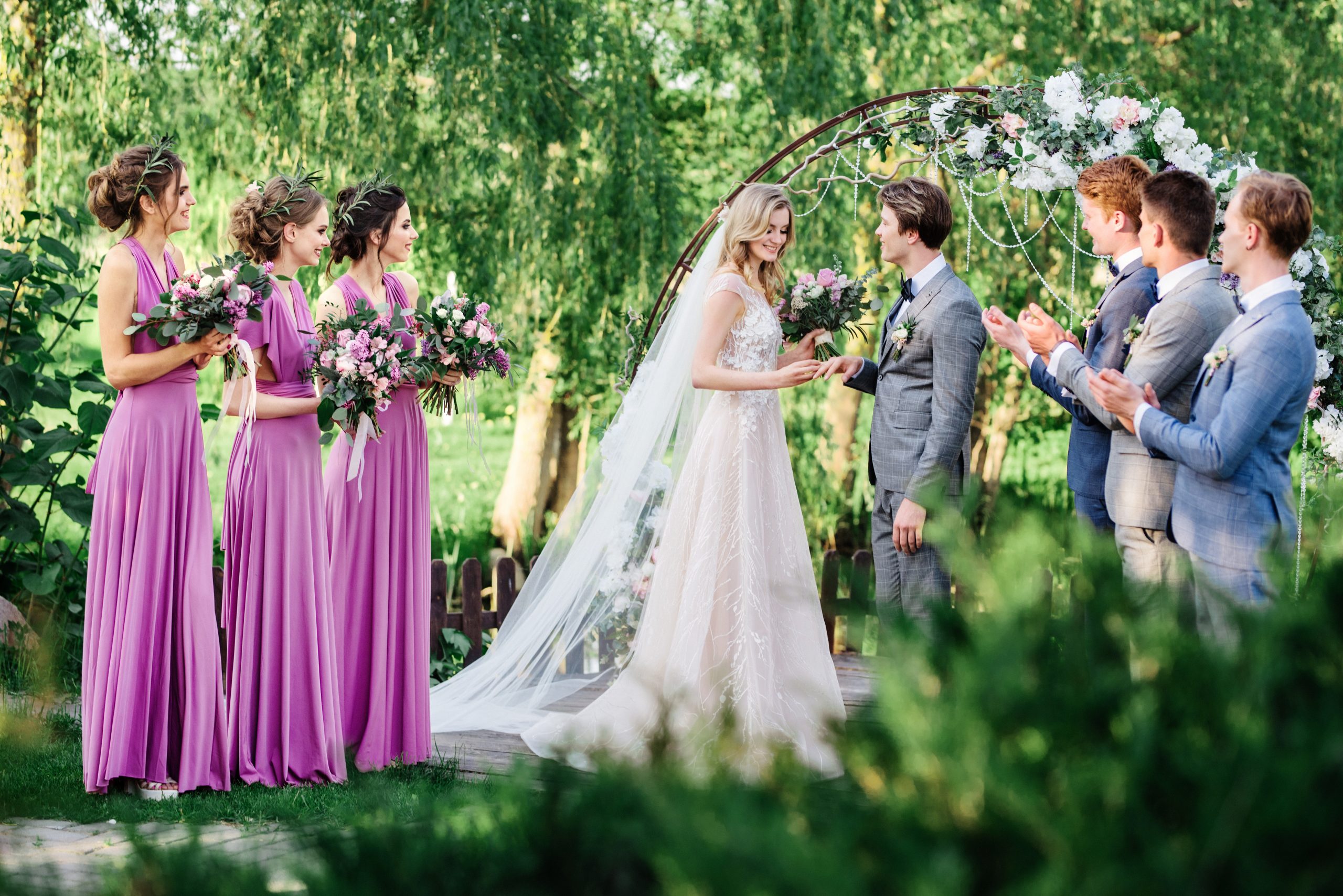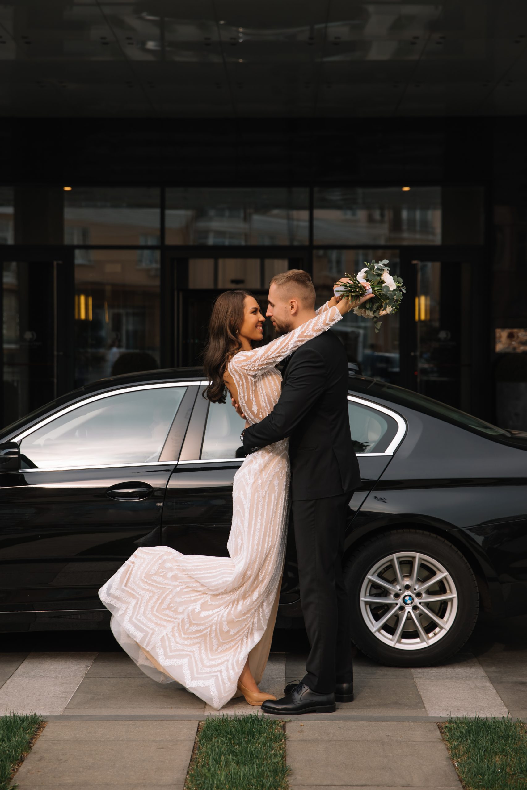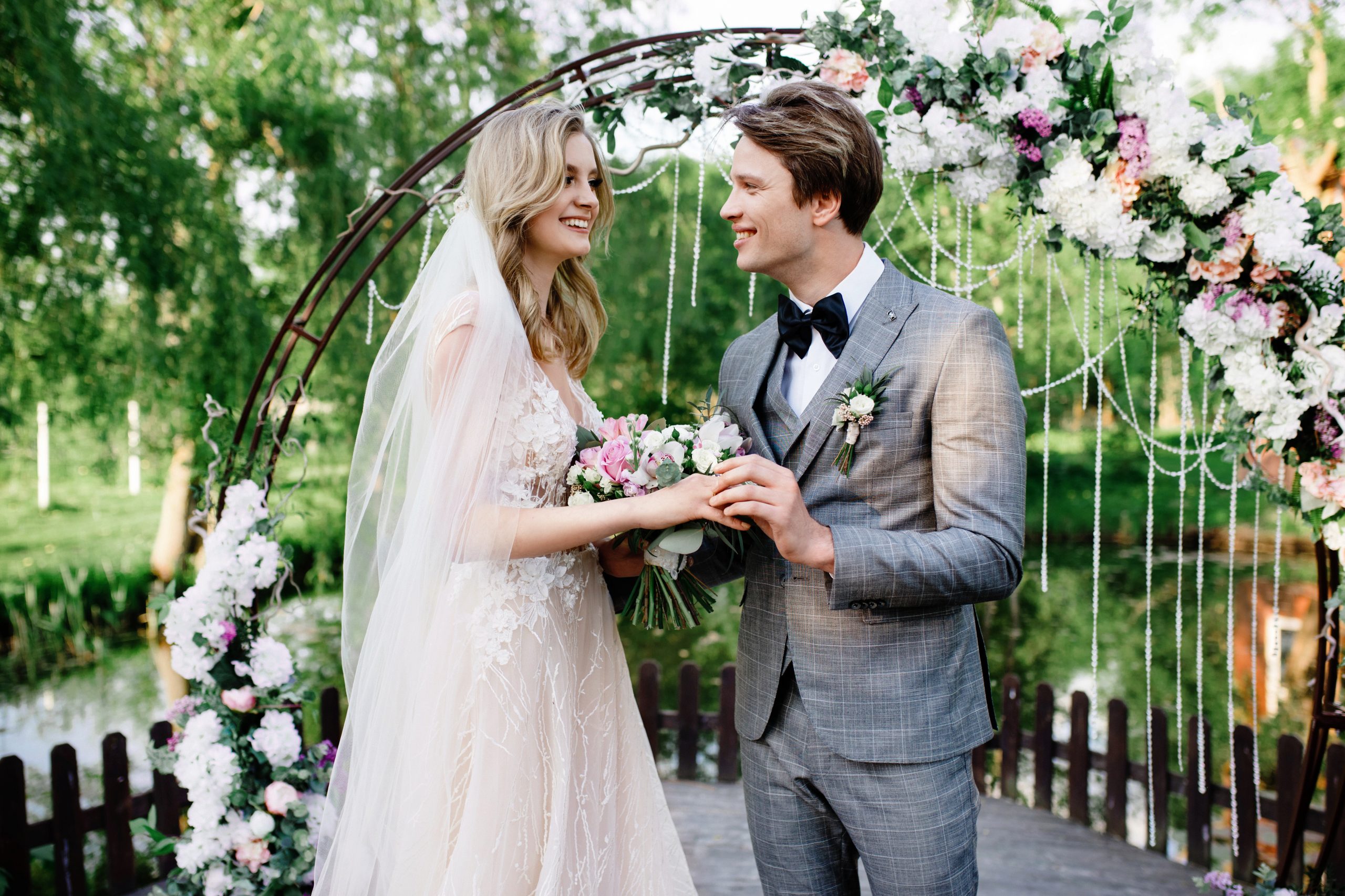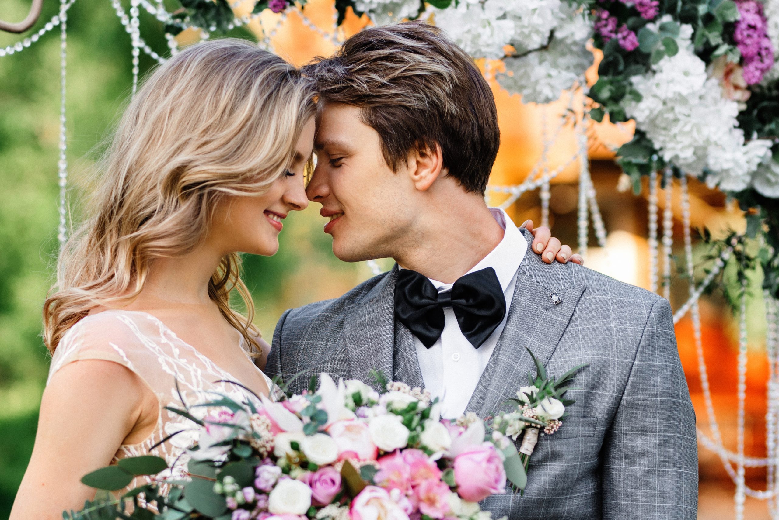 К сожалению, мы не видим окончательного образа невесты и восхищённого взгляда жениха, а так хотелось бы взглянуть хоть одним глазком!