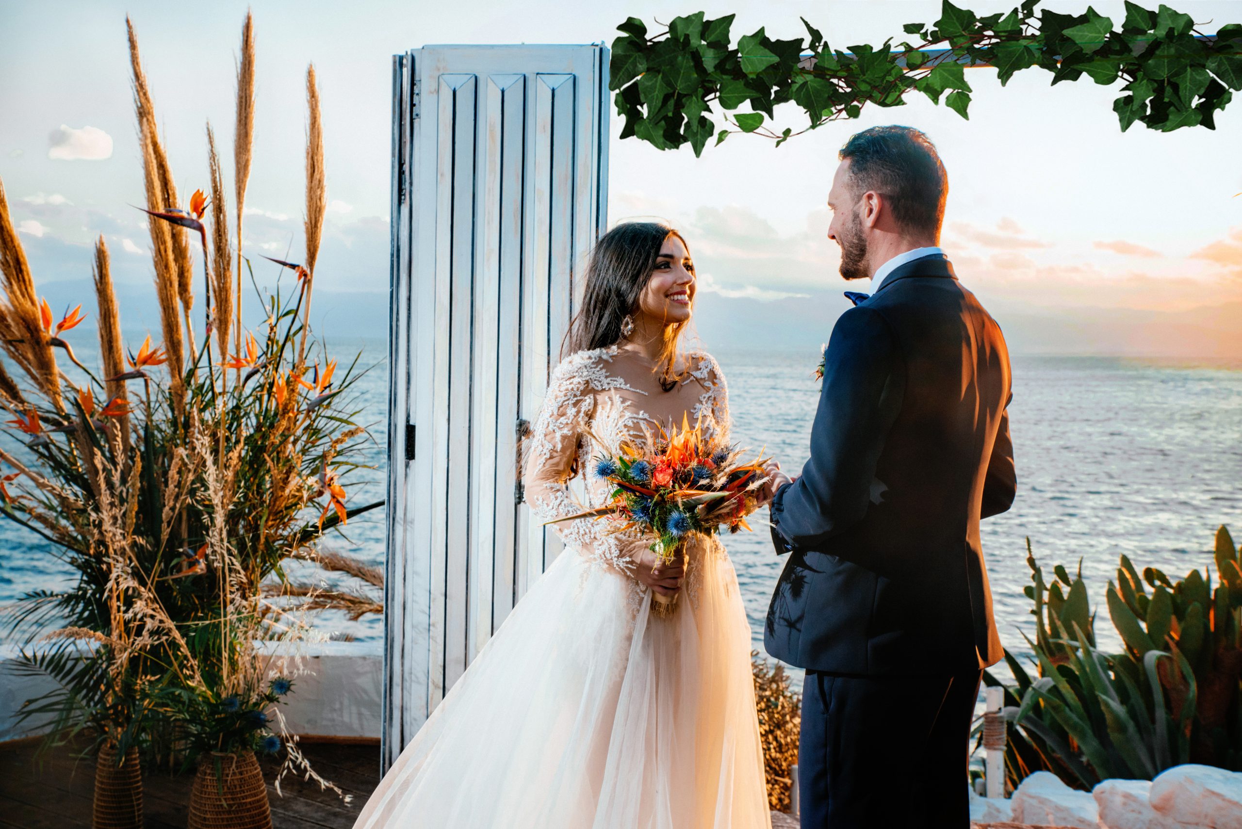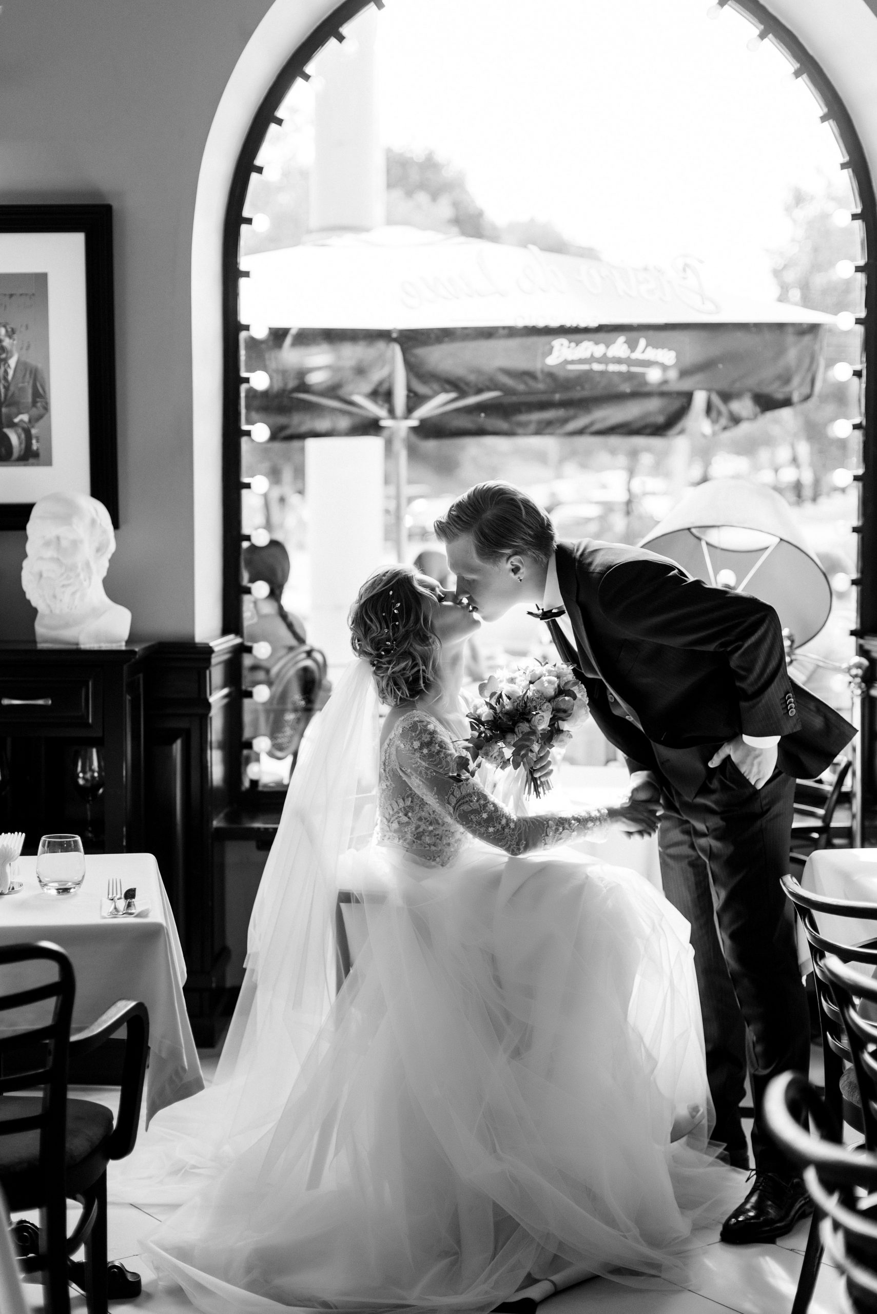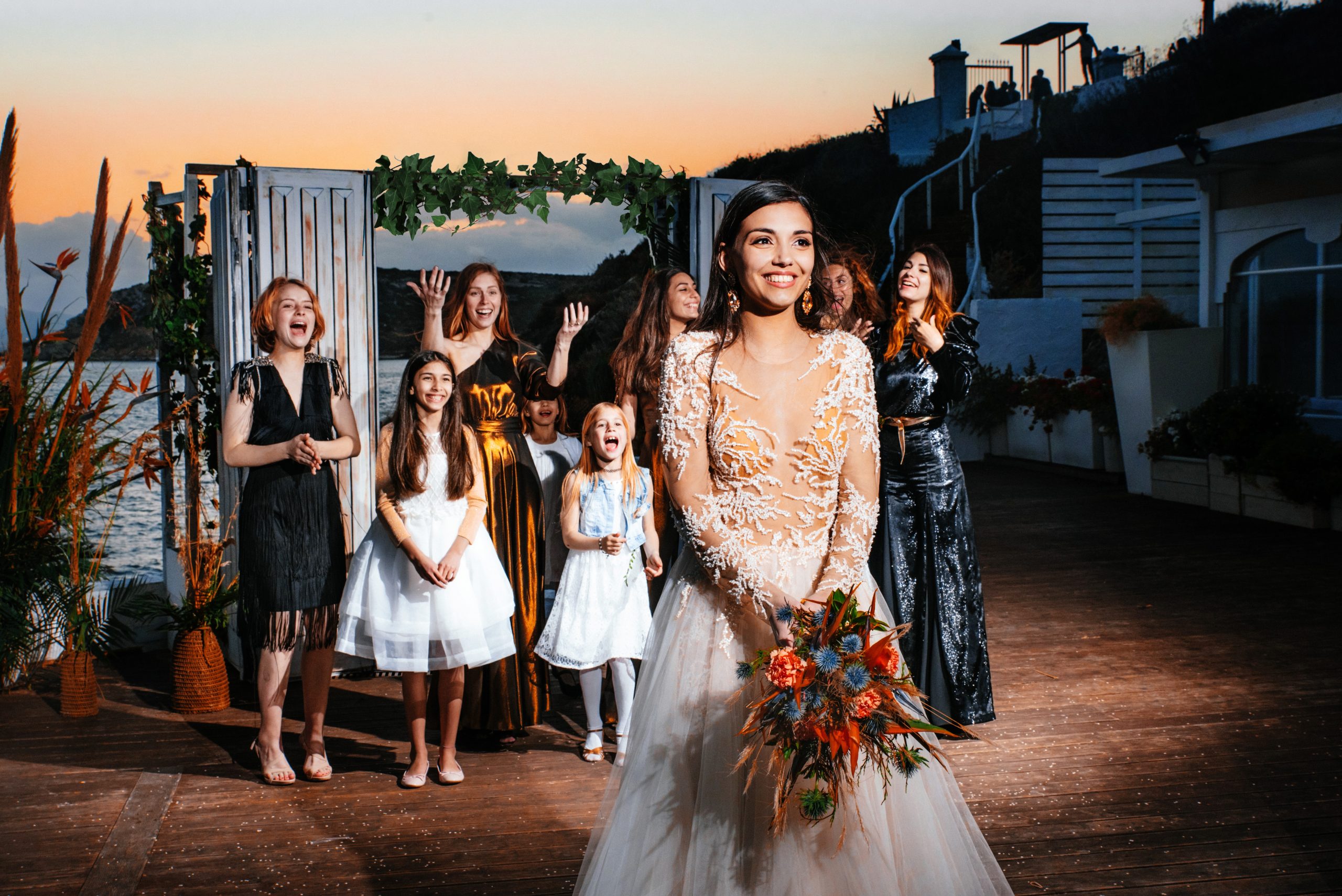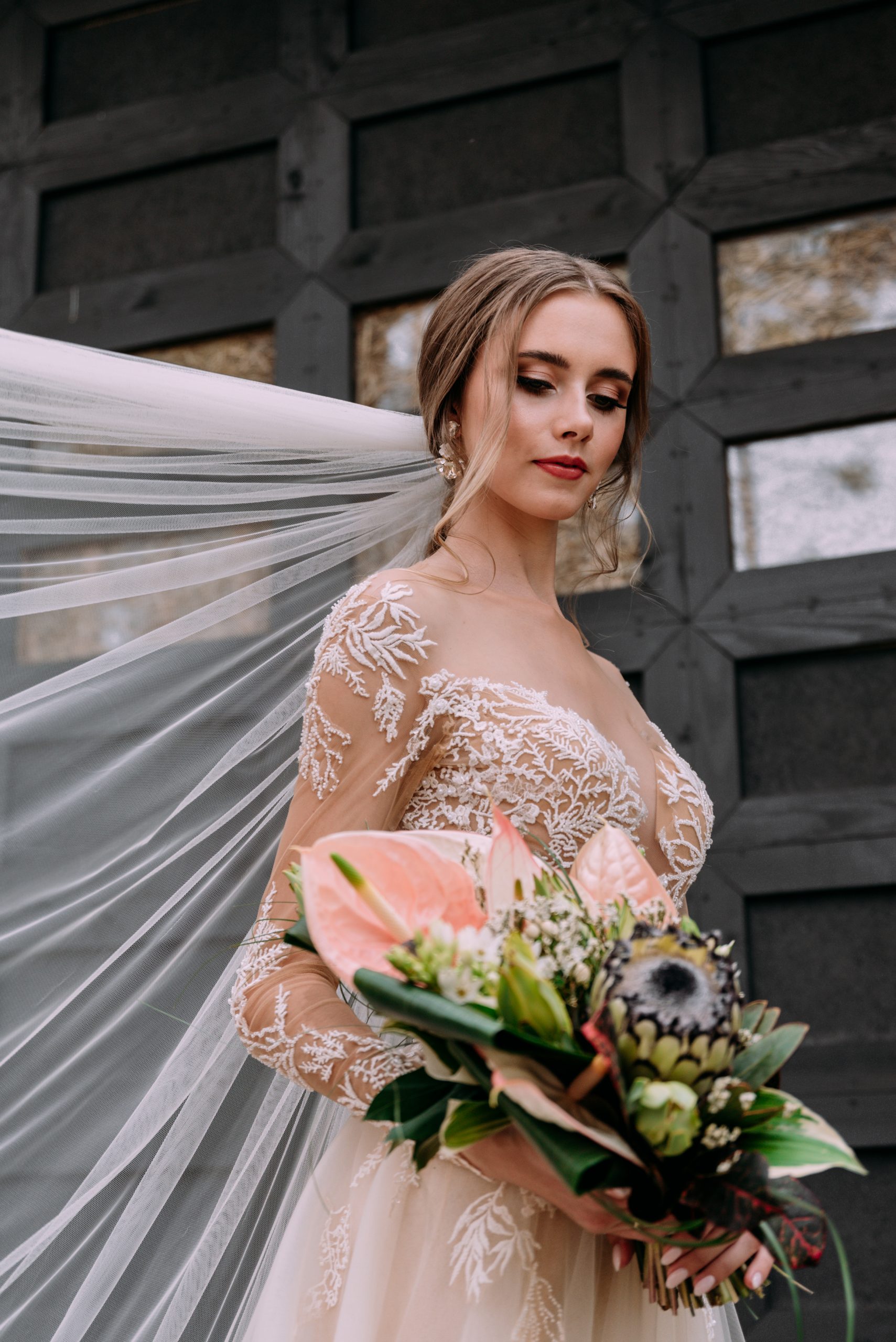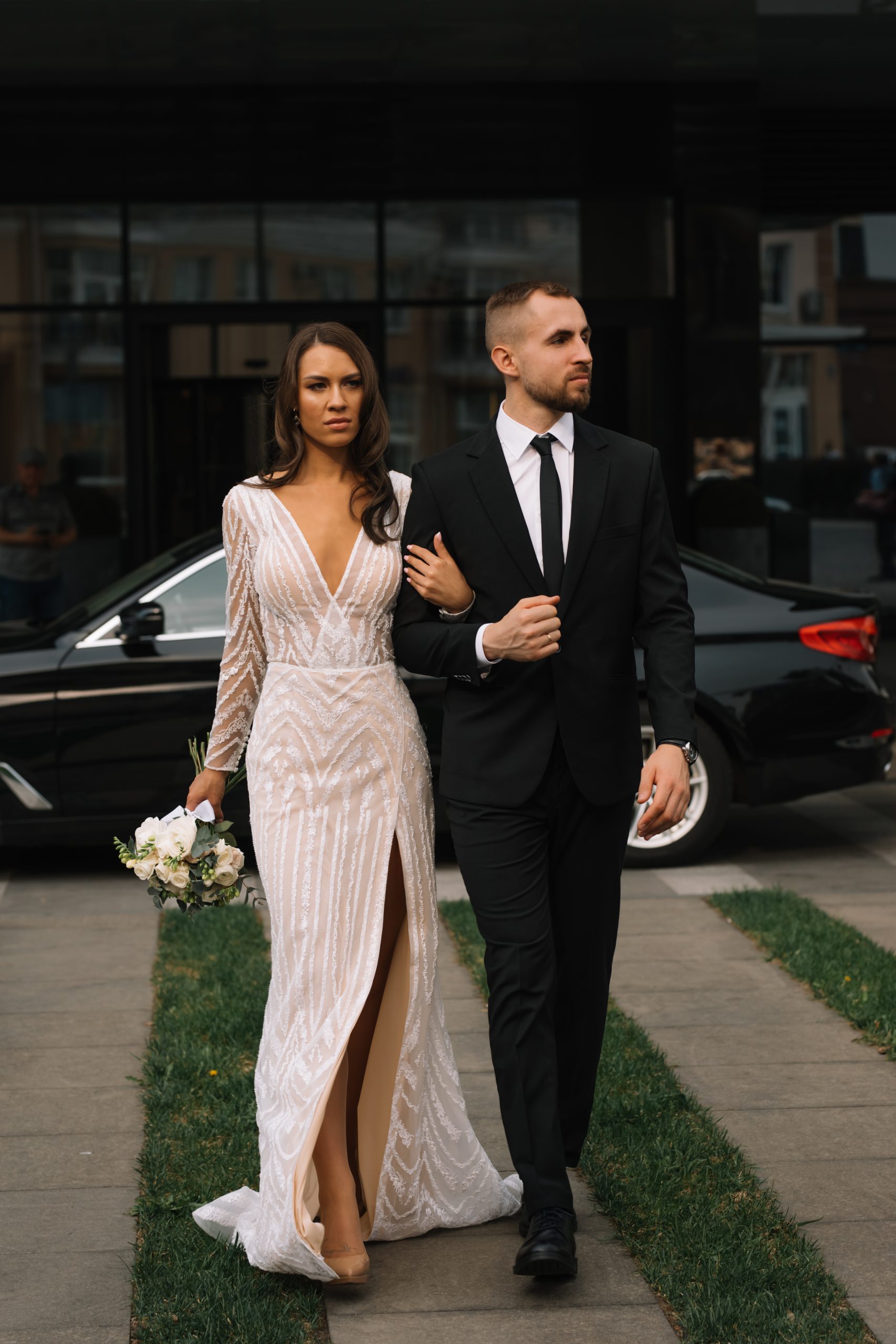 К сожалению, мы не видим окончательного образа невесты и восхищённого взгляда жениха, а так хотелось бы взглянуть хоть одним глазком!